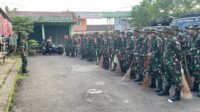 Peduli Lingkungan, Yonif 144/JY Fokus Bersihkan Drainase dan Fasilitas Umum