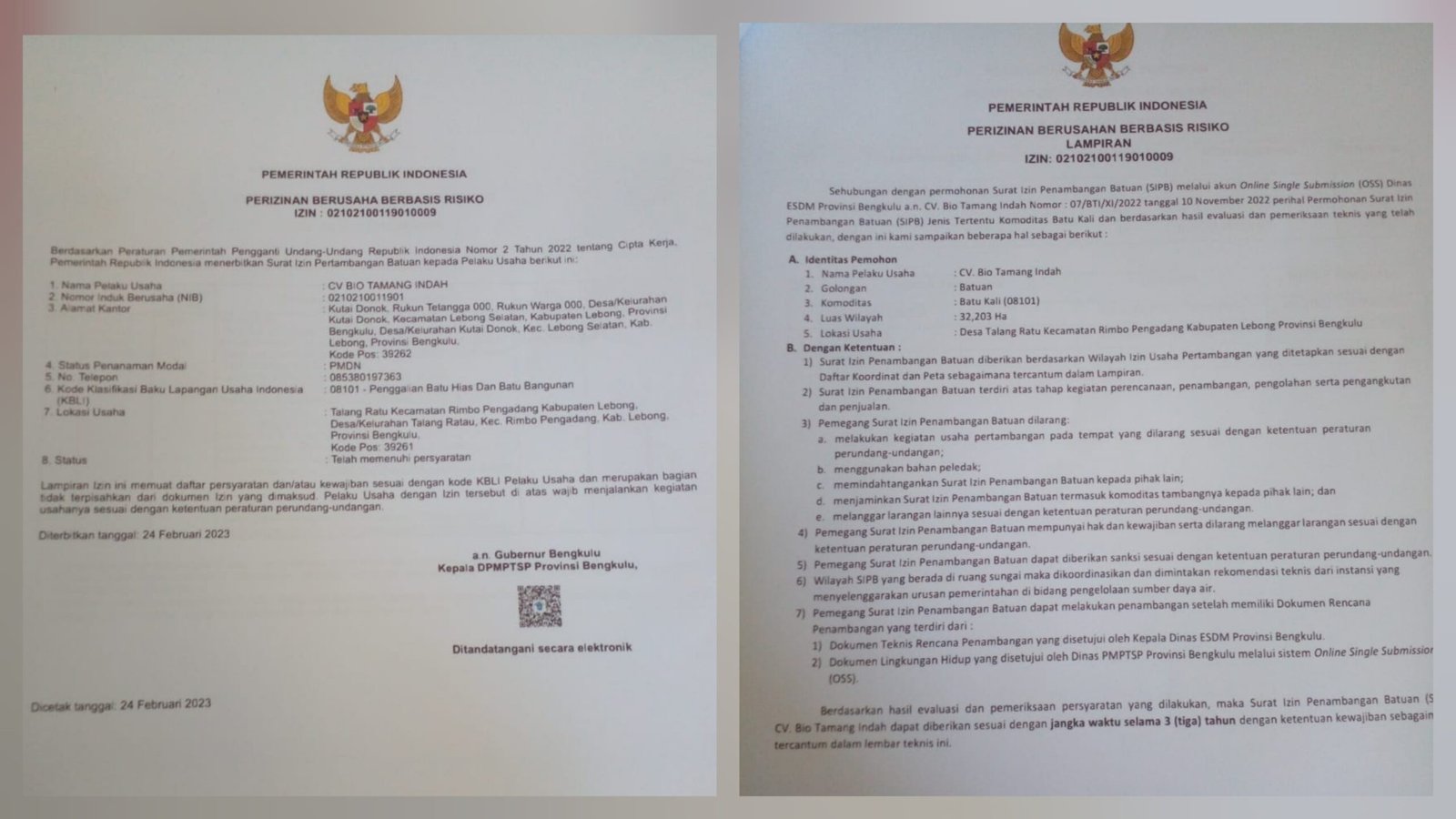 BPBD menegaskan bahwa seluruh material yang digunakan dalam proyek tersebut berasal dari kuari yang memiliki izin resmi. Izin operasional galian C dan sirtu tersebut telah dikantongi sejak tahun 2023 dan diterbitkan oleh Dinas Penanaman Modal dan Pelayanan Terpadu Satu Pintu (PTSP) Provinsi Bengkulu.