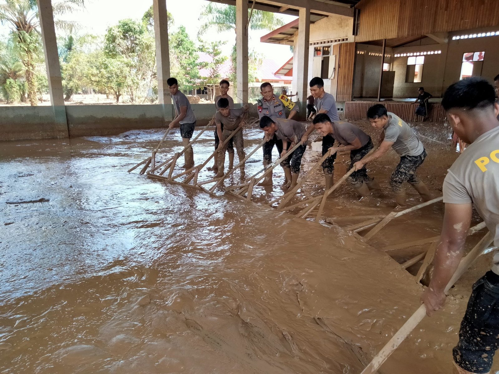 “Pascabencana, pemulihan sarana pendidikan menjadi prioritas agar anak-anak dapat segera kembali belajar dengan aman dan nyaman. Polri hadir untuk membantu membersihkan fasilitas sekolah sekaligus memastikan lingkungan belajar kembali layak digunakan,” ujar Kombes Pol. Erdi A. Chaniago.