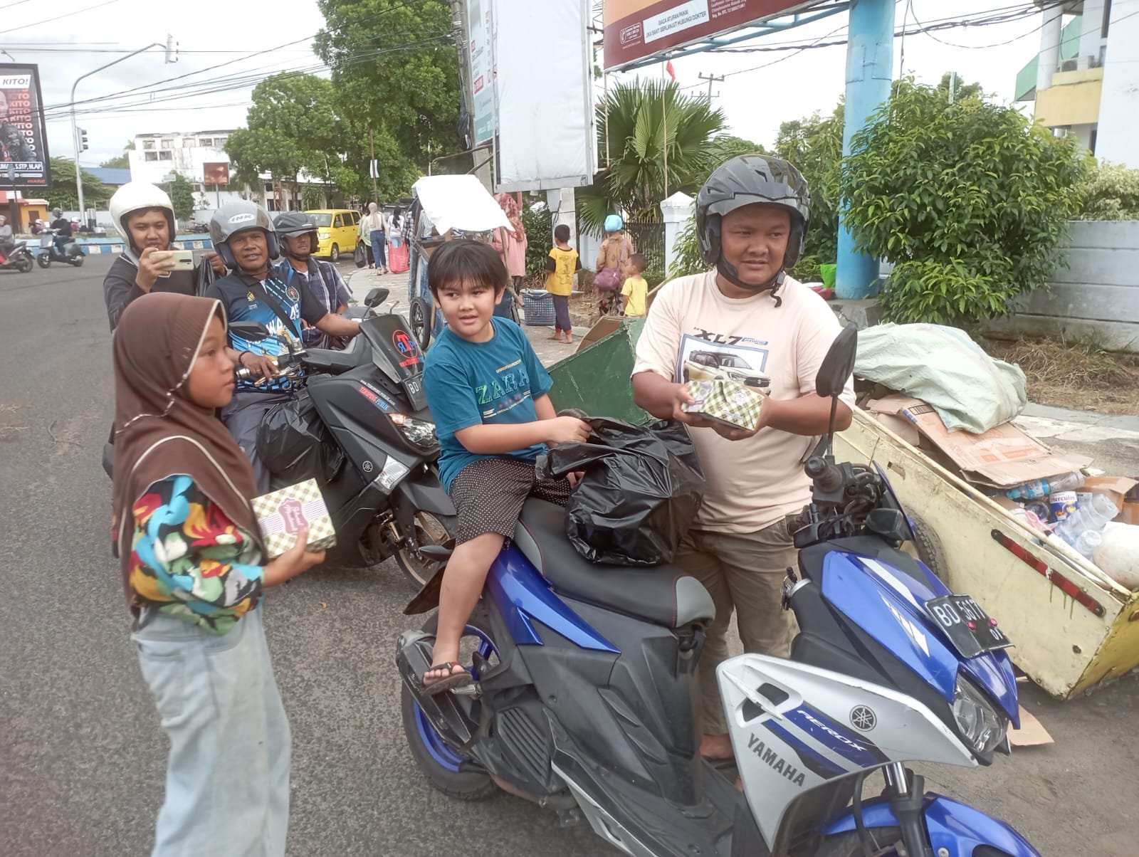 Dijelaskan oleh Iwan panggilan akrabnya. Kegiatan yang mereka laksanakan merupakan bentuk kepedulian terhadap sesama di bulan penuh berkah bulan suci ramadhan 1445 H. “Kegiatan ini kami namakan berbagi takjil gratis on the road. Dimana kami membagikan takjil dengan cara mendatangi langsung para pengemis dan gelandangan untuk diberikan satu kotak takjil yang berisi empat macam kue serta air minum mineral. Awalnya dalam Bulan Suci Ramadhan ini, kami ada Doni, Rio, Bang Ameng, Bang Roki, Bang Dian, Saprian, Tedy, Nasti, Arun serta Windi menjadwalkan untuk buka puasa bersama. Namun sebelum bukber itu, kita berinisiatif untuk berbagi takjil terlebih dahulu. Kemudian kami kumpulan swadaya dari 10 orang terkumpul lebih dari satu juta rupiah yang kami belikan takjil untuk dibagikan secara gratis. Dan Alhamdulillah program itu sudah kita lakukan,” jelasnya.