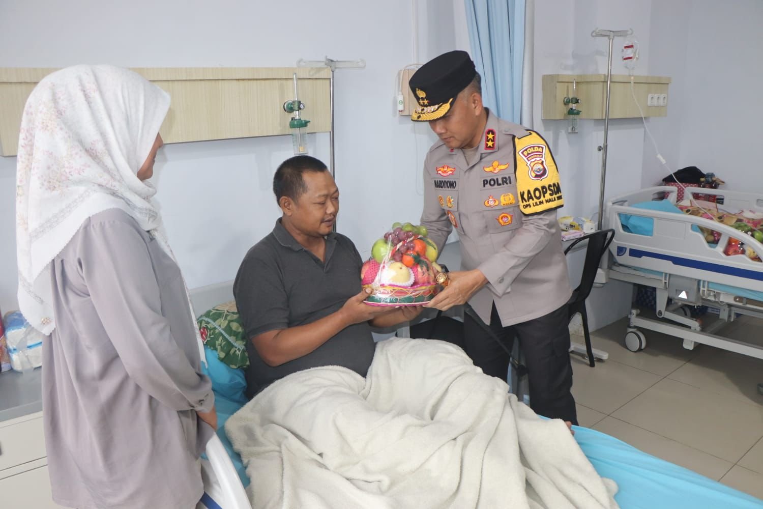 Pada kesempatan tersebut, Kapolda Bengkulu menjenguk tiga personel Polri yang sedang dirawat dengan kondisi medis yang berbeda-beda, yakni: