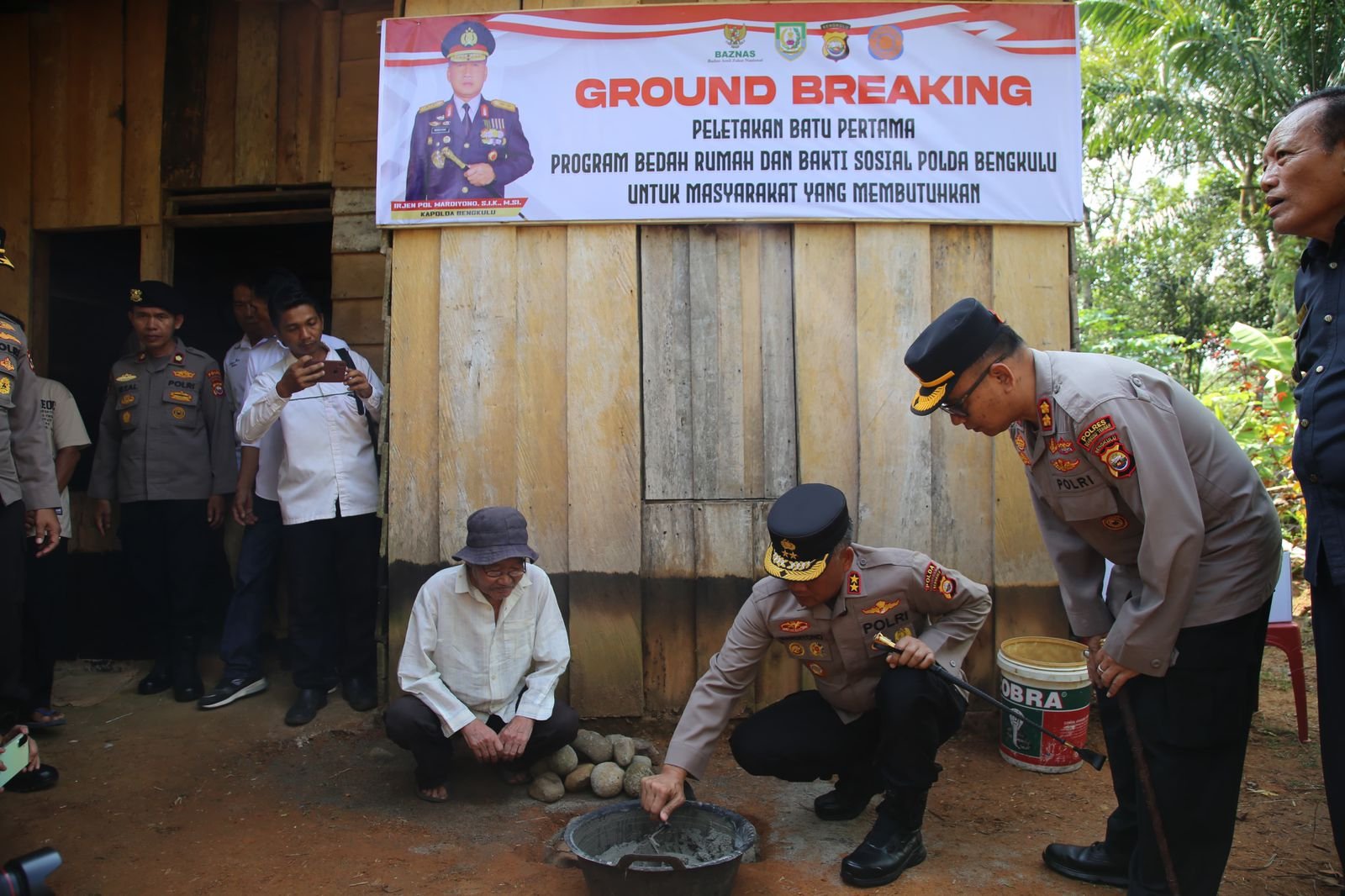 Kapolda Bengkulu juga melakukan peninjauan rumah dan peletakan batu pertama, serta pembongkaran rumah secara simbolis. Kegiatan ini diakhiri dengan foto bersama dan pemberian 5 paket sembako kepada masyarakat sekitar yang membutuhkan.