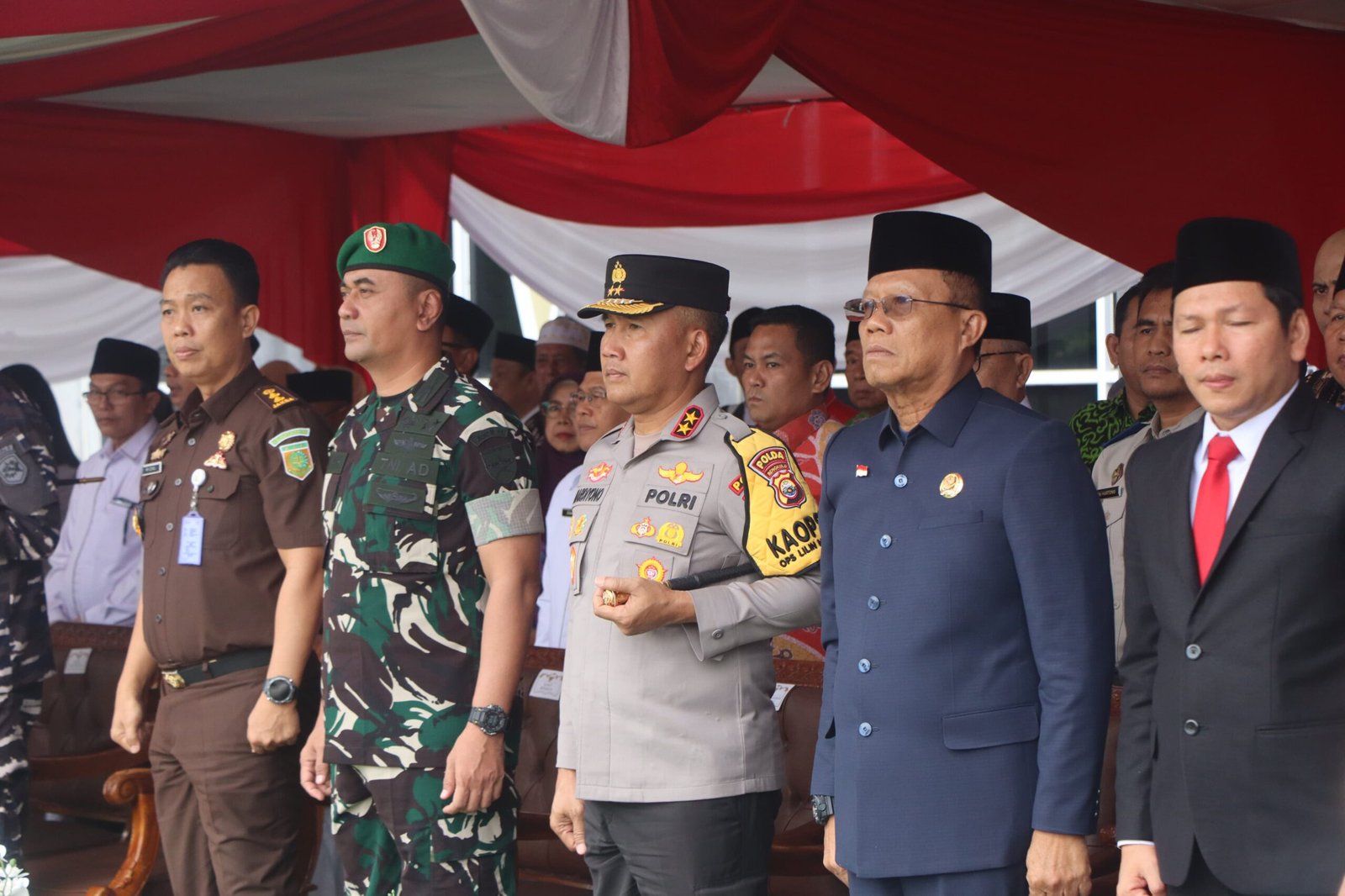 Upacara yang dimulai pukul 07.00 WIB tersebut dihadiri oleh Gubernur Bengkulu, Ketua DPRD Provinsi Bengkulu, unsur Forum Koordinasi Pimpinan Daerah (Forkopimda) Provinsi Bengkulu, Ketua Majelis Ulama Indonesia (MUI) Provinsi Bengkulu, serta para tokoh agama dan tokoh masyarakat. Kegiatan berlangsung dengan khidmat dan penuh semangat kebersamaan, mencerminkan komitmen bersama dalam menjaga persatuan dan keharmonisan kehidupan beragama.