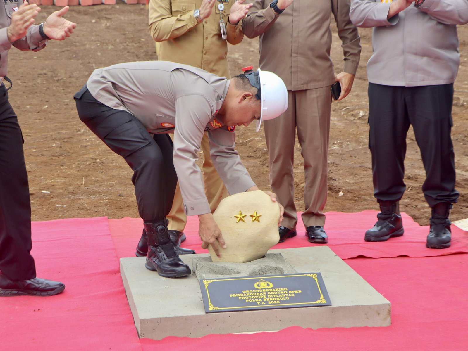 Kegiatan groundbreaking ditandai dengan peletakan batu pertama secara simbolis oleh Kapolda Bengkulu beserta jajaran, sebagai tanda dimulainya proses pembangunan gedung yang ditargetkan selesai tepat waktu sesuai perencanaan.**Gus