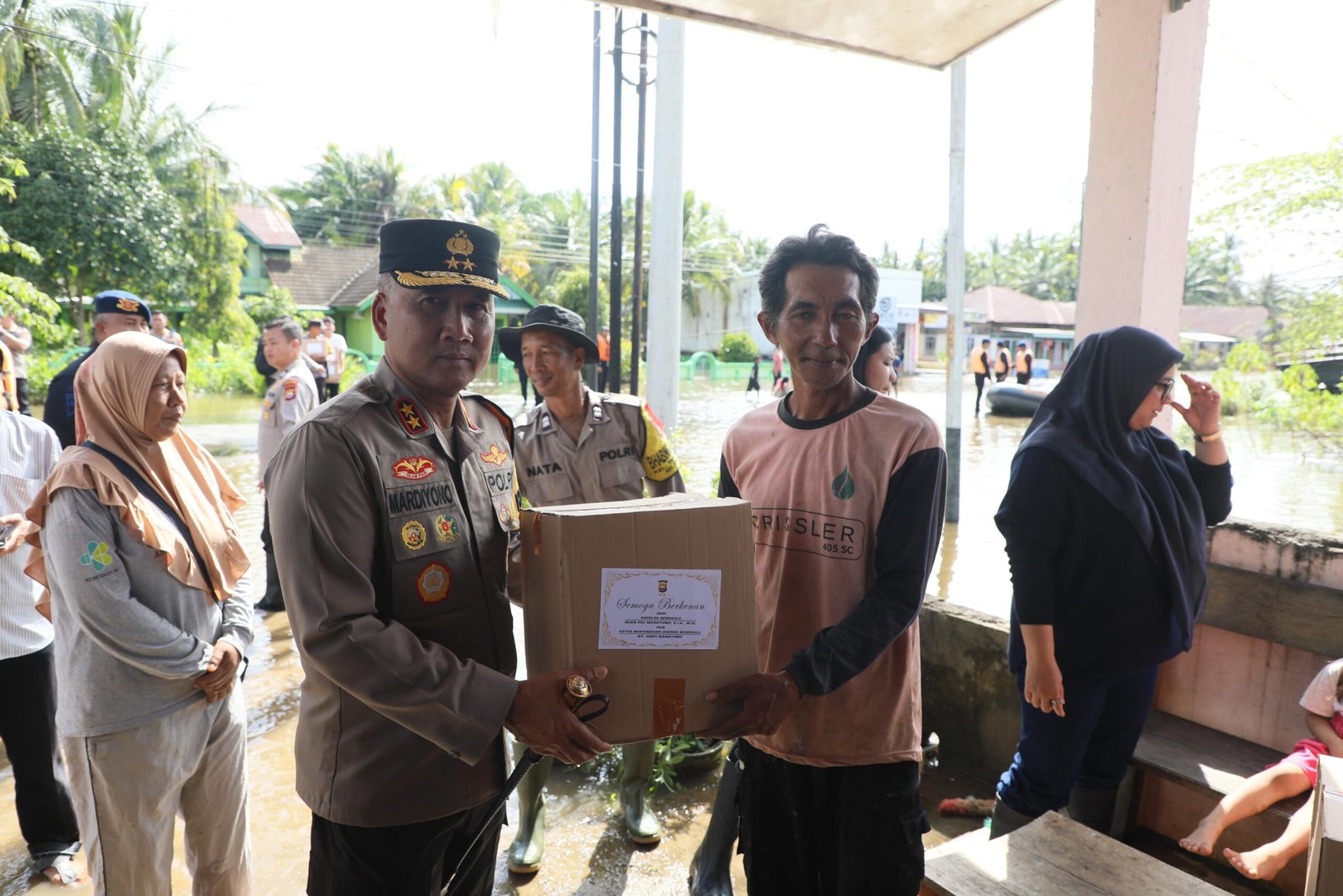 Bersama Ketua Bhayangkari, Kapolda melakukan peninjauan door-to-door ke rumah-rumah warga terdampak, bertatap muka langsung dengan masyarakat yang terdampak banjir.Di Kelurahan Tanjung Jaya, sebanyak 35 KK terdampak banjir. Dalam kesempatan ini, Kapolda dan Ketua Bhayangkari menyampaikan empati, motivasi, serta dorongan untuk tetap sabar menghadapi musibah. Kapolda juga memberikan bantuan langsung kepada warga terdampak banjir, berupa sembako dan bantuan lainnya.