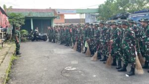 Selesai melaksanakan apel pengecekan personel oleh Perwira Pengawas Mayor Cke Abu Hasan Sazuli, personel Korem 041/Gamas langsung menyerbu seluruh sampah-sampah yang berada di kawasan tersebut hingga bersih.