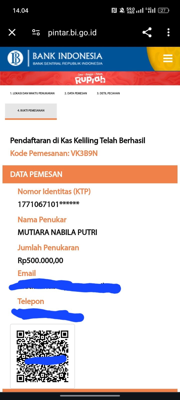 • Penukar wajib membawa KTP & bukti pemesanan penukaran uang Rupiah melalui kas keliling dalam bentuk digital/cetak yang telah disertai QR Code.Gus