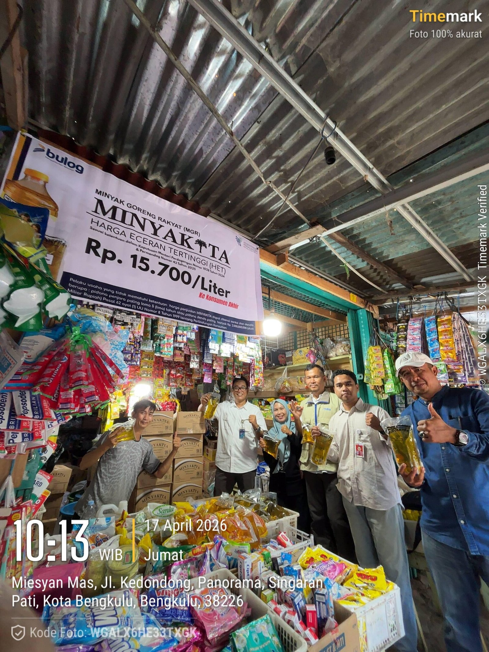 GOESSNEWS.COM – Bengkulu, 17 April 2026 – Perum BULOG Kanwil Bengkulu memastikan ketersediaan minyak goreng “Minyakita” tetap aman dan tersedia di pasar-pasar tradisional. Komitmen ini ditegaskan melalui kegiatan monitoring langsung yang dilakukan oleh Pemimpin Wilayah Perum BULOG Bengkulu, Dody Syahrial, S.E., QIA. bersama jajaran di Pasar Panorama dan Pasar Minggu, Kota Bengkulu, pada Jumat (17/4).