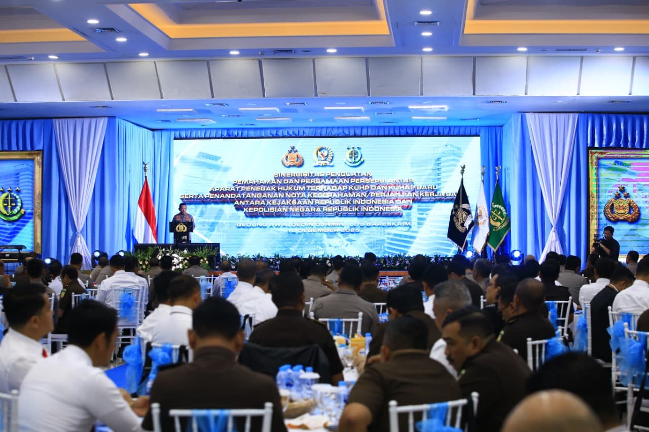 Jakarta — Kepala Kepolisian Negara Republik Indonesia (Kapolri) Jenderal Polisi Listyo Sigit Prabowo menegaskan pentingnya sinergi antarpenegak hukum dalam pelaksanaan Kitab Undang-Undang Hukum Pidana (KUHP) dan Kitab Undang-Undang Hukum Acara Pidana (KUHAP) yang baru. Hal tersebut disampaikan Kapolri dalam kegiatan penandatanganan Nota Kesepahaman (MoU) yang dilanjutkan dengan Perjanjian Kerja Sama (PKS) antara Kepolisian dan Kejaksaan.